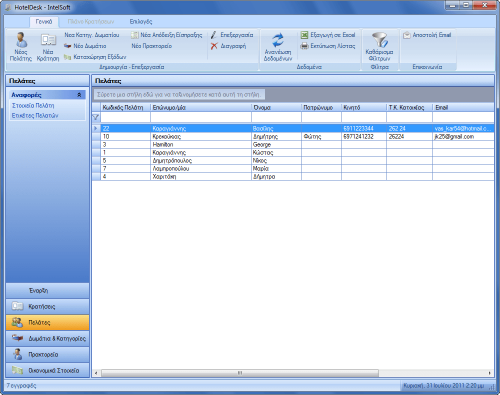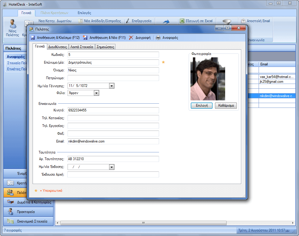 - Καταχώρηση των πελατών σας συμπληρώνοντας μια μεγάλη πληθώρα από στοιχεία όπως ονοματεπώνυμο, πατρώνυμο, επωνυμία, κινητό τηλέφωνο, email, ταχυδρομική διεύθυνση και πολλά άλλα.