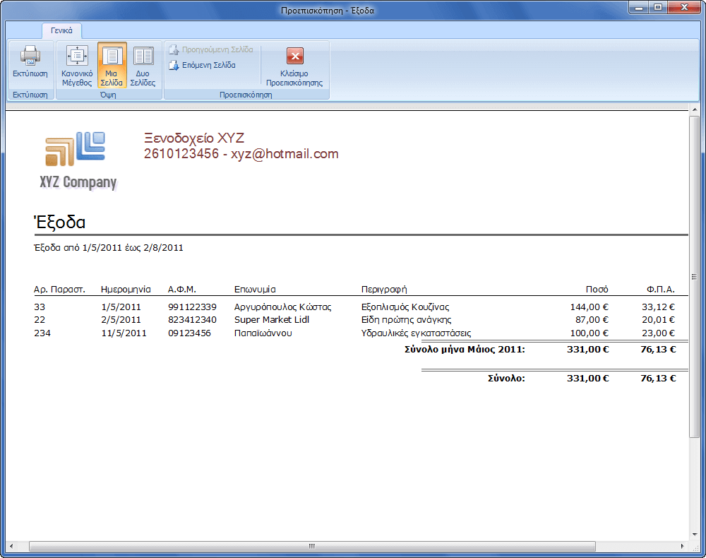 - Καταχώρηση των εξόδων του ξενοδοχείου σας.