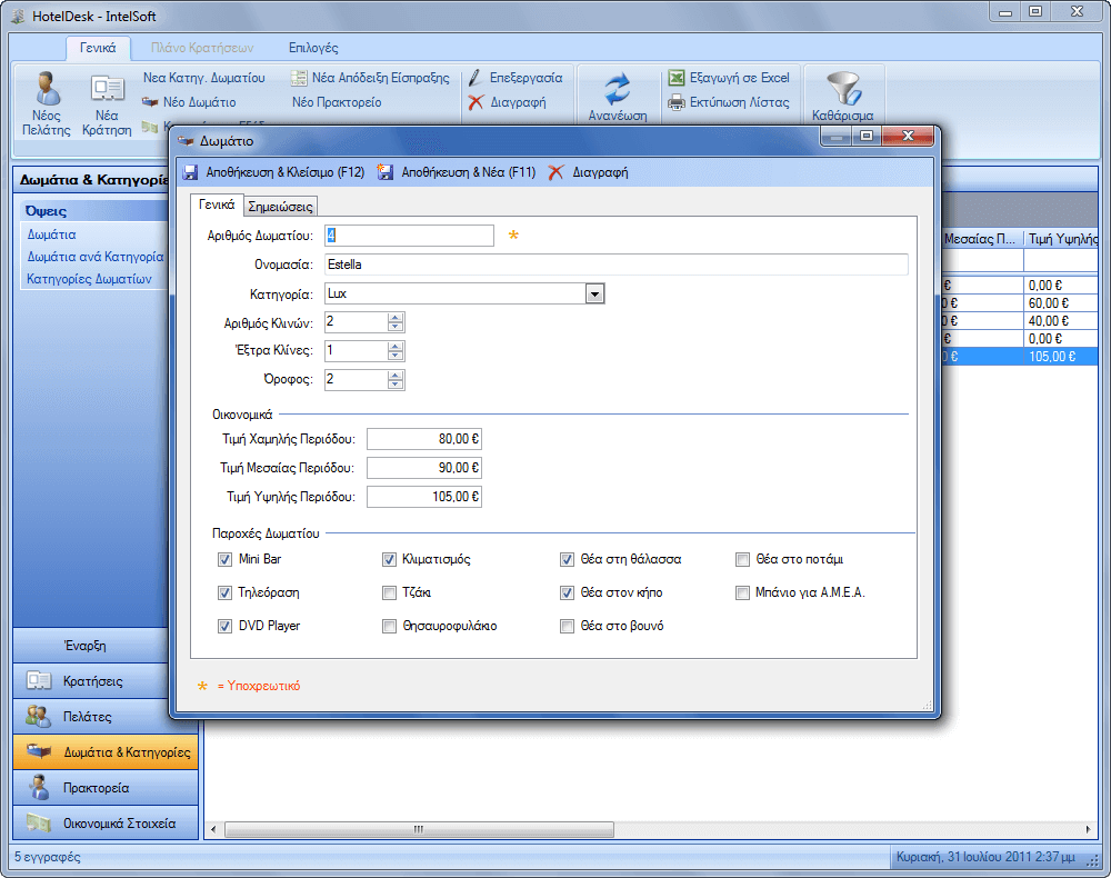 - Μπορείτε να δημιουργήσετε όσα δωμάτια και κατηγορίες δωματίων θέλετε.