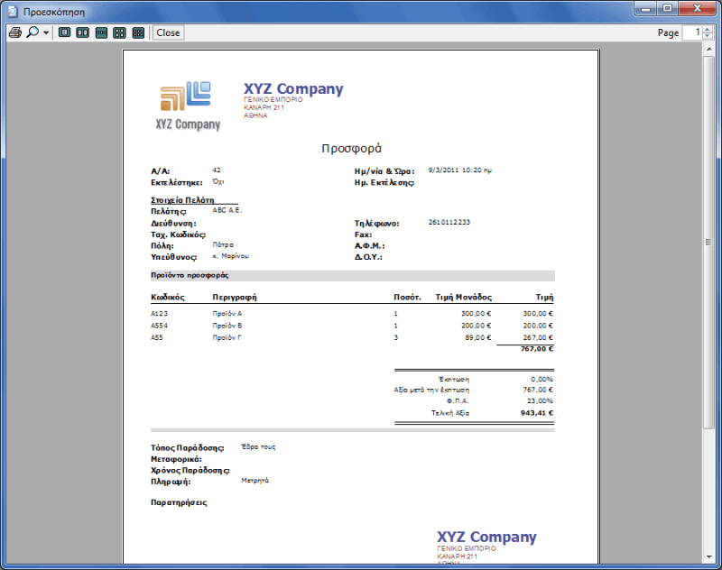 - Εκπτώσεις ανά είδος και συνολική έκπτωση στη προσφορά.