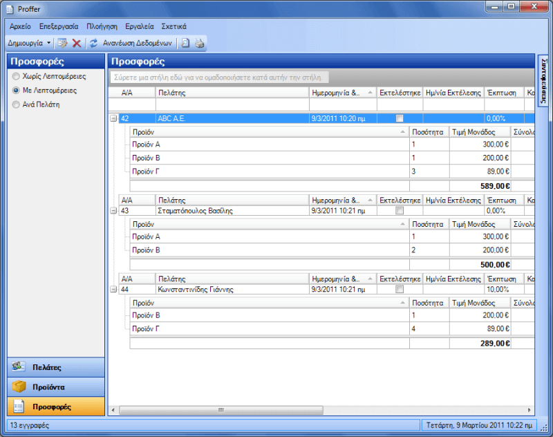 - Να γνωρίζετε πόσες και ποιες προσφορές έχετε εκδώσει για κάθε πελάτη σας.